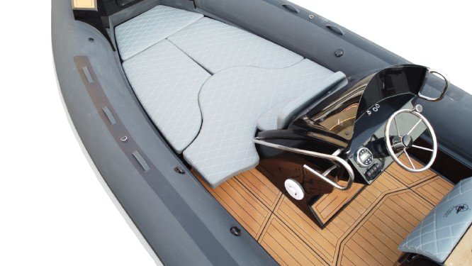 Nei nostri gommoni, ogni dettaglio è pensato per offrire qualità, durata e un’estetica curata. I cuscini non fanno eccezione: sono realizzati con tessuti nautici selezionati tra i migliori disponibili sul mercato, progettati per resistere a sole, salsedine e umidità, senza rinunciare al comfort e all’eleganza.